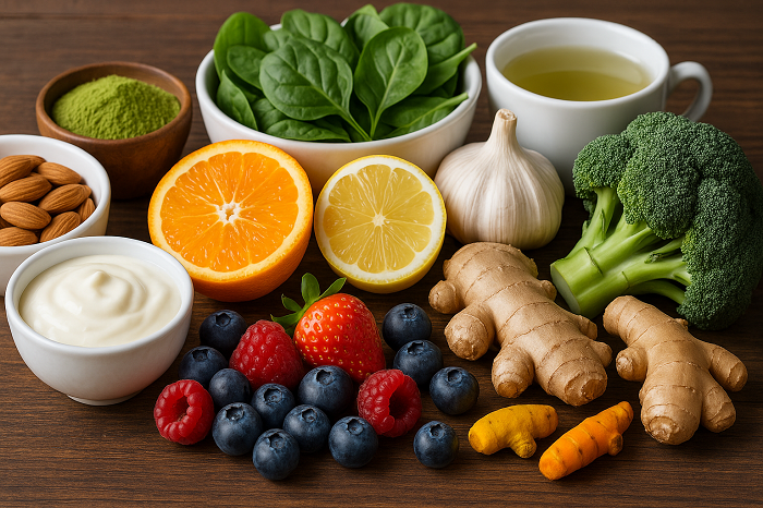 Answer. Citrus fruits, garlic, ginger, and green tea offer quick support due to their high antioxidant and vitamin content.